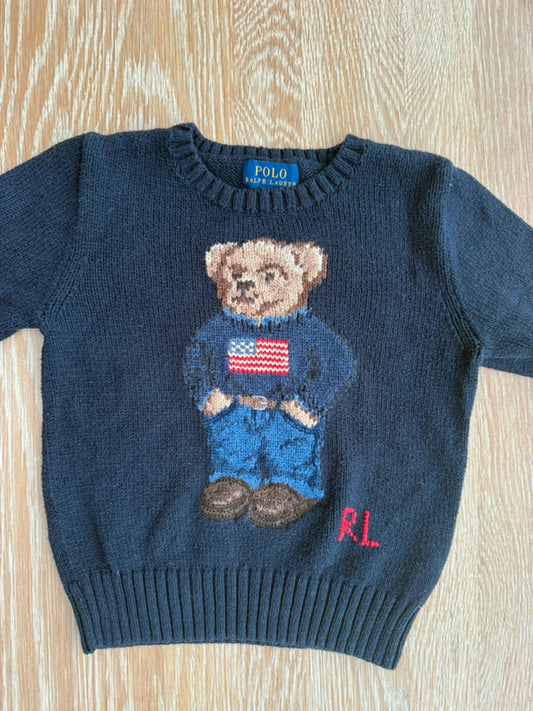 Unisex Polo Bear Cotton Navy Knit Jumper 3T